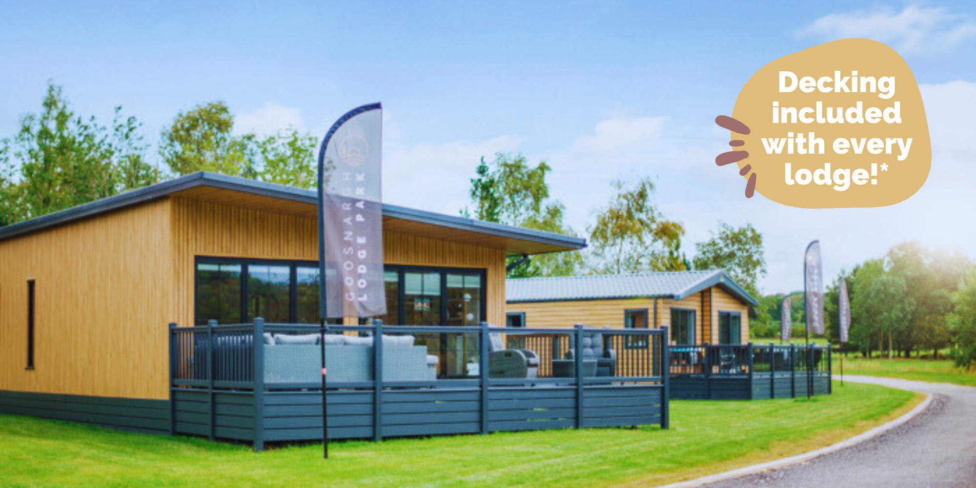 **Terms & Conditions apply. The decking is included in the agreed holiday home purchase price. Decking will be supplied and arranged by Goosnargh Lodge Park through its chosen supplier and will meet the park’s standard specification and design. Materials, size, layout and finish may vary depending on the holiday home model and pitch. Installation timelines may vary depending on contractor availability. Applies to new purchases of in-stock holiday homes made between 17/03/2026-30/04/2026. Sale must be completed by 31/05/2026 to qualify. Promotion applies to new sales only, is non-transferable and cannot be exchanged for cash. Goosnargh Lodge Park reserves the right to withdraw the promotion at any time.